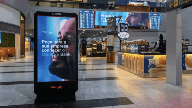 Em áreas como salas de embarque e portões, a permanência prolongada no mesmo campo visual eleva retenção e associação de marca, consolidando o aeroporto como um dos meios de maior qualidade de atenção.